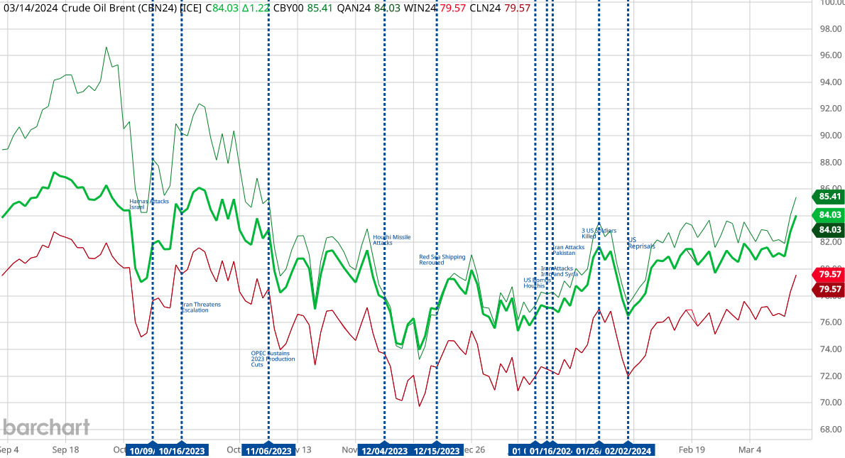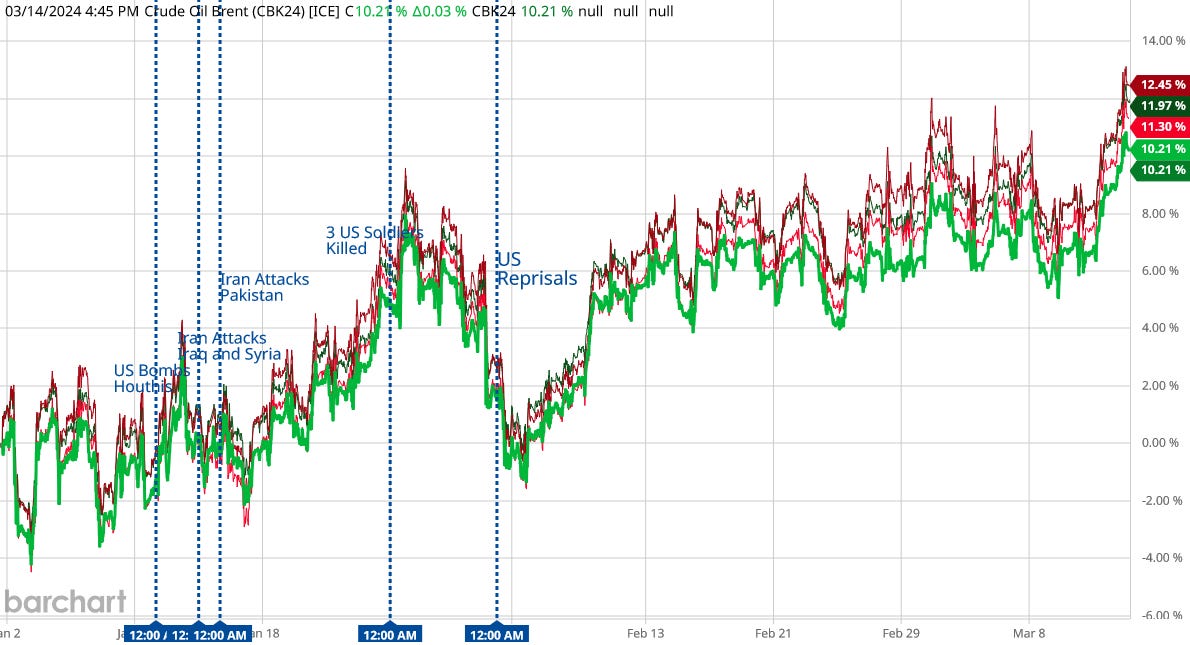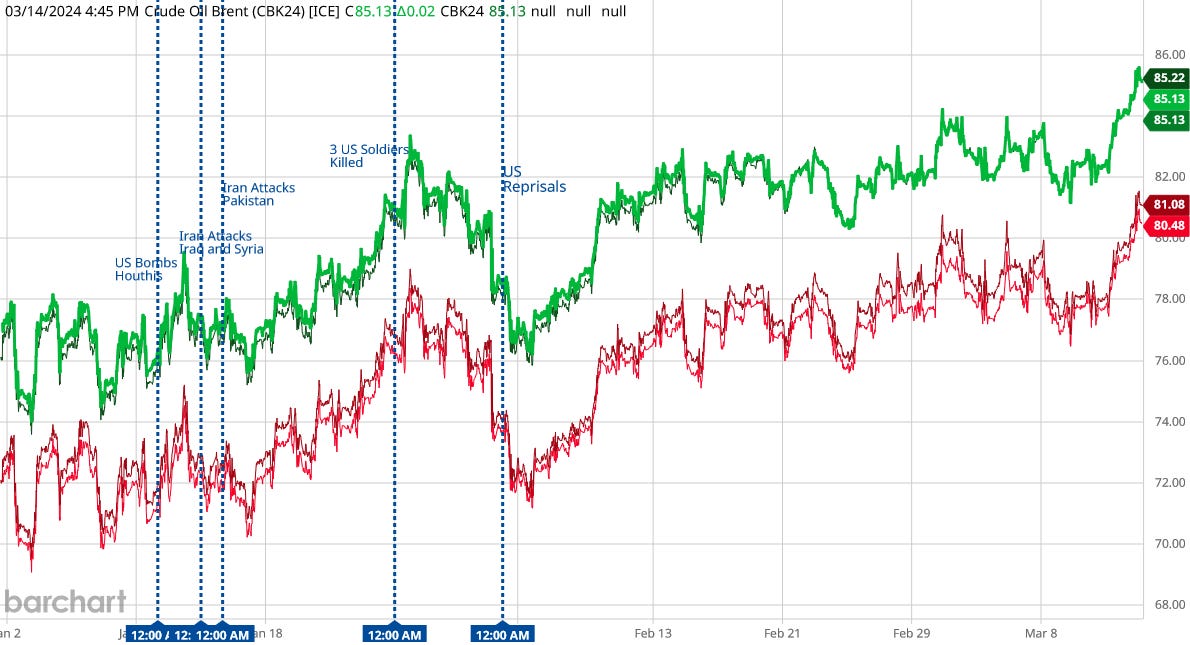 Yet even with that, until last Thursday, oil prices settled into a relatively narrow trading band by early February. This despite US reprisal strikes against the Houthis as well as other Iranian proxies in Iraq and Syria, especially after three US servicemen were killed in Jordan.