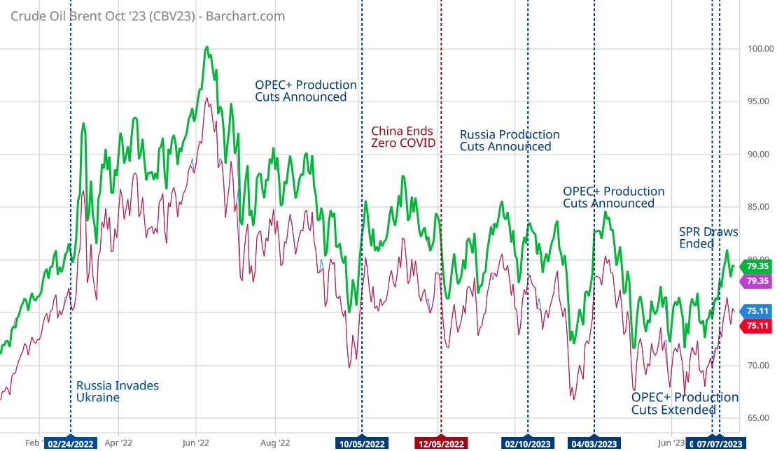 As subsequent data would reveal, that assessment was wrong. June 2023 has very much been the price floor for oil. Indeed, by the end of June oil prices were climbing, and would continue to climb through August and September, with spot Brent prices climbing even farther. With the war in Ukraine having settled down into a stalemate in eastern Ukraine, and the Israeli-Hamas War yet to begin, the Russian and Saudi production cuts had finally succeeded in pushing oil prices up for a time.