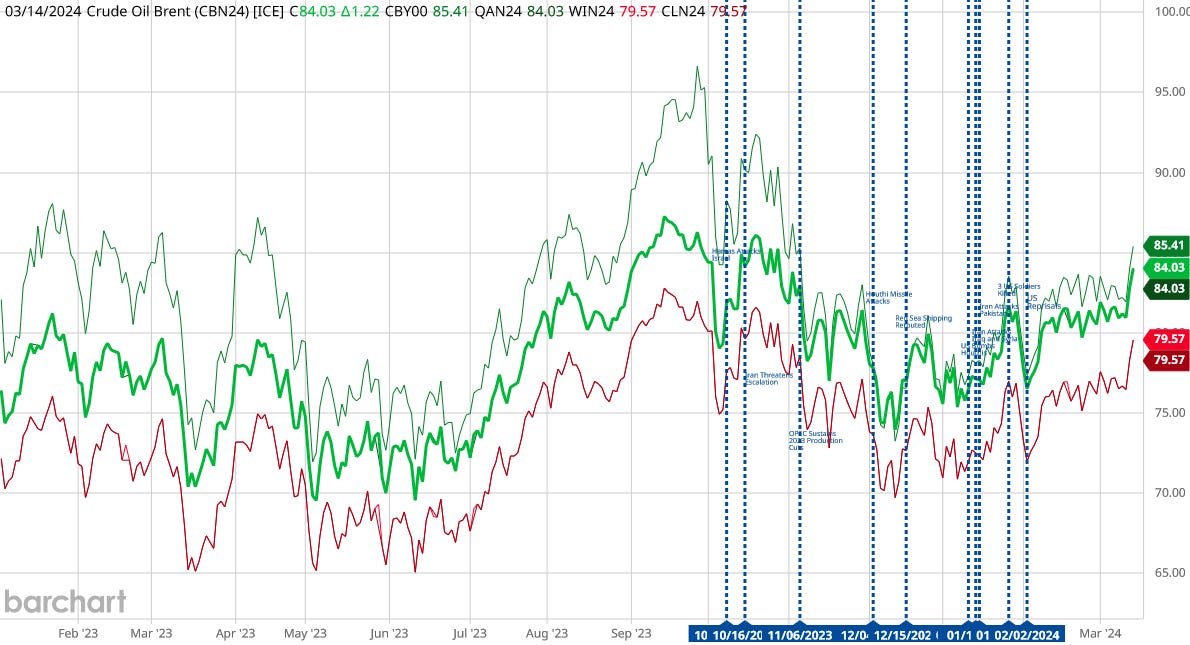 It would not be until the Houthi missile attacks in the Red Sea began to take a toll on a major global trade route that oil prices would find a floor once more.