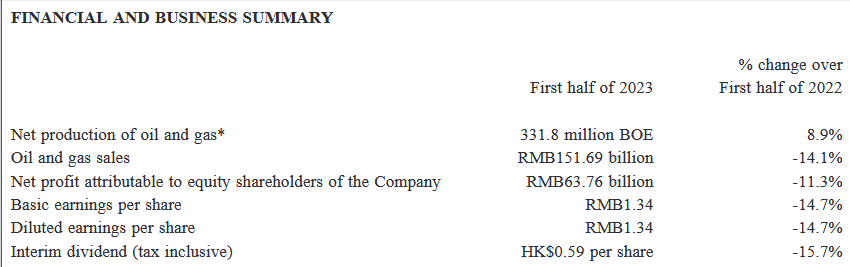 At the same time, China’s own oil producer, CNOOC, has posted double digit profit declines for the first half of 2023 relative to the first half of 2022.