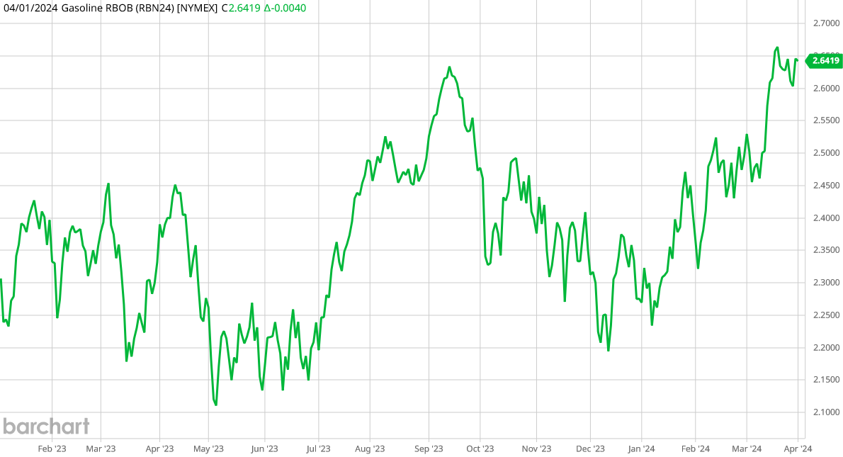Significantly, gasoline futures prices have already topped their September 2023 peaks, and are continuing to rise—a trend that seaks loudly against the possibilty of prices trending down again in the near term.