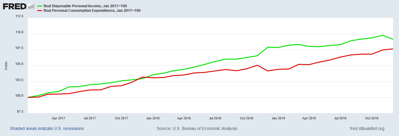 As it turned out, during the Trump Administration, incomes outpaced expenditures.