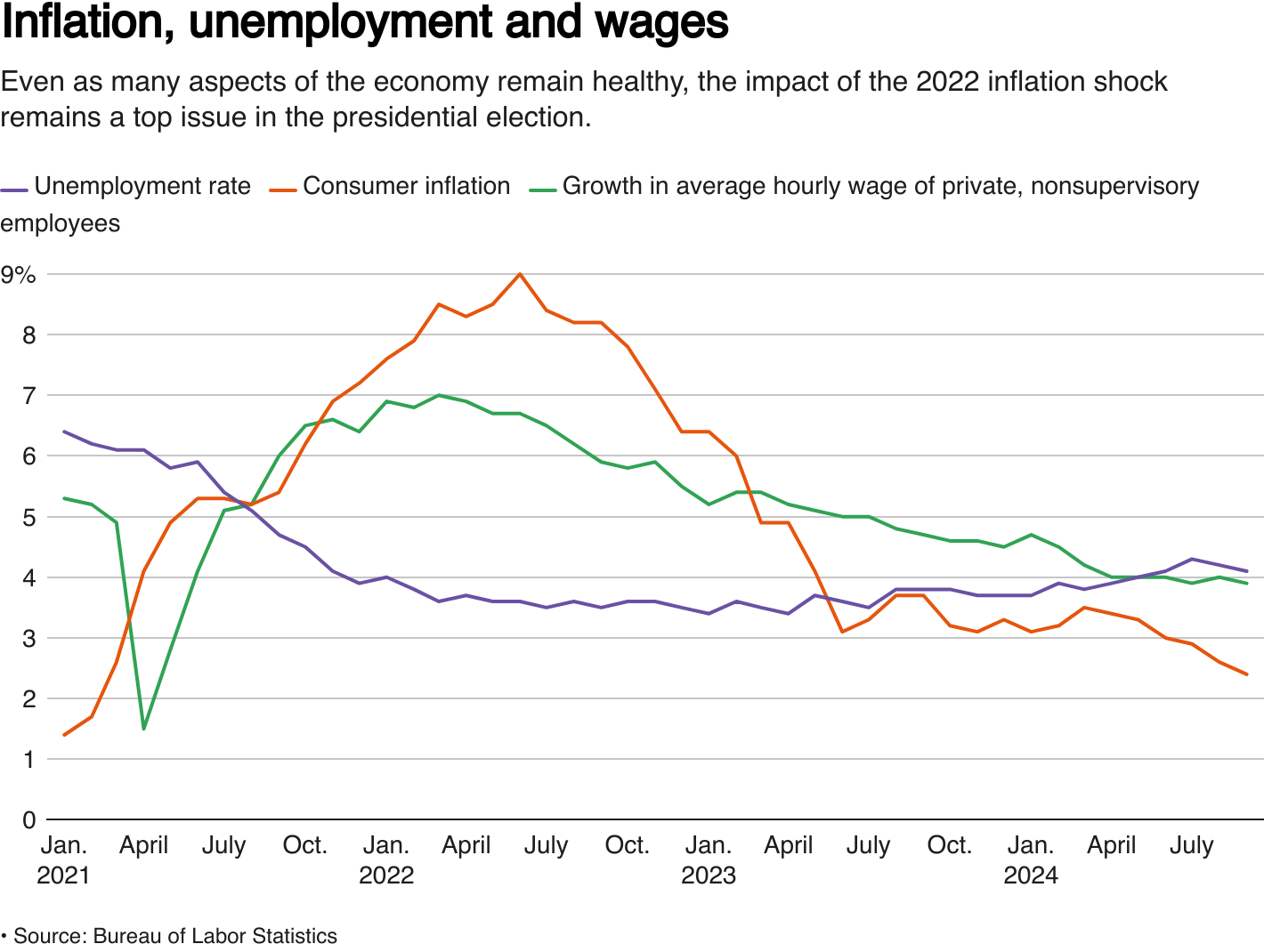 As good as the economy might seem across most major indicators, inflation that peaked at 9% more than two years ago has been hard for Vice President and Democratic nominee Kamala Harris to outrun, and given former President and Republican candidate Donald Trump a cudgel that remains effective on the eve of the election even as inflation has dwindled to 2.4%.