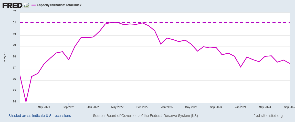 Plant capacity utilization in this country has been in decline for even longer, since April of 2022.