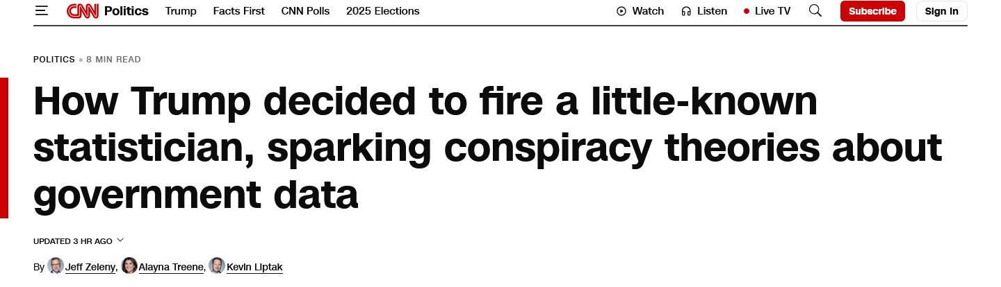 The media-created furor over the firing of the Commissioner of the Bureau of Labor Statistics is but the latest such effort by the media, and the latest “conspiracy theory” to become “conspiracy fact.”