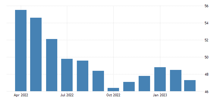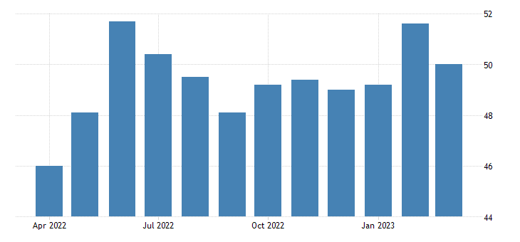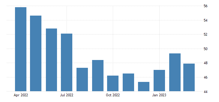 The Eurozone’s manufacturing PMI also printed below 50 for March, which was the 9th consecutive month of contraction for manufacturing in the eurozone.