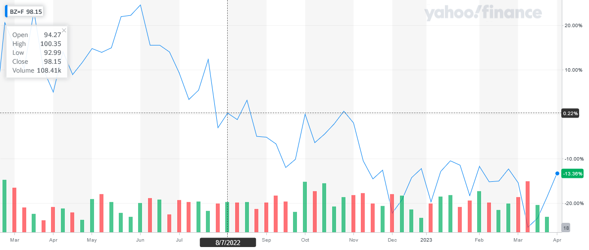 Bear in mind just how much the price of oil has fallen from last year. Even if we discount last year’s price rises after Russia invaded Ukraine as a reaction to the start of that war, the price of Brent crude has still fallen more than 13% since its price on February 23, 2022—the day before Russia invaded Ukraine.