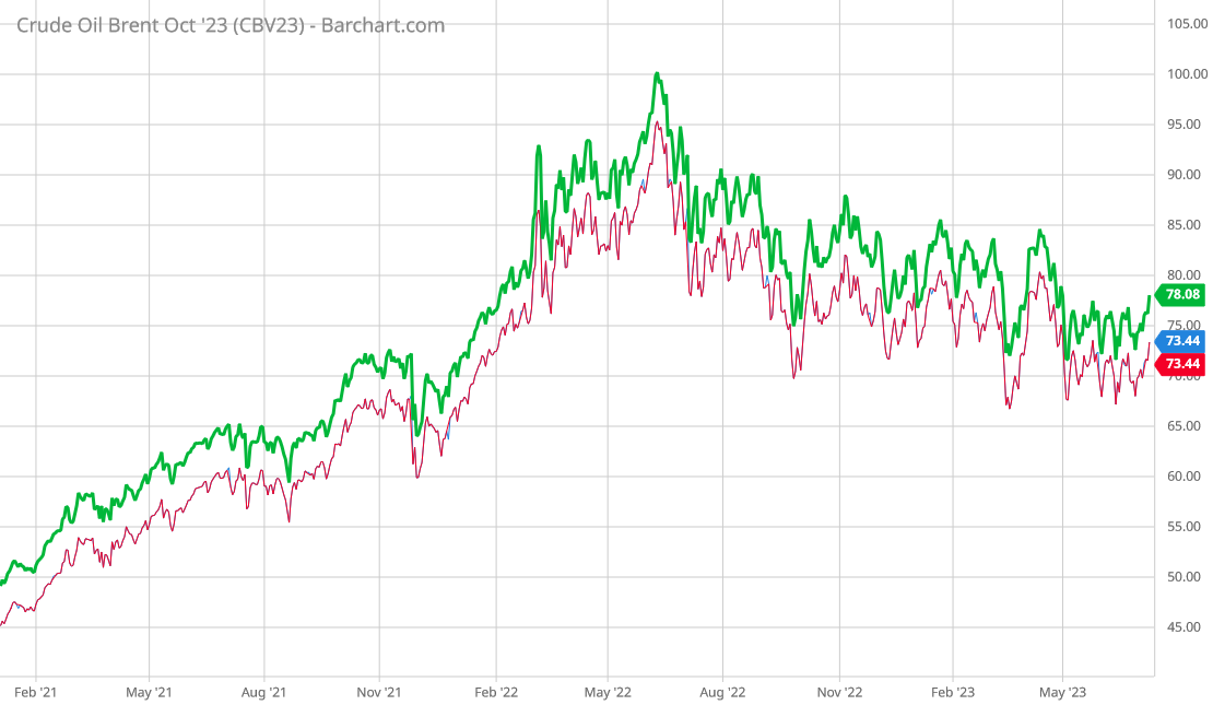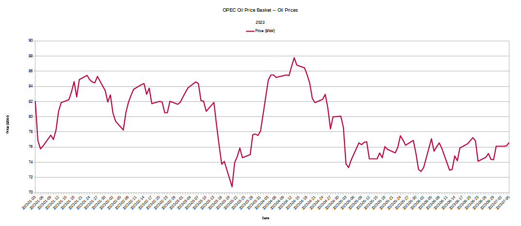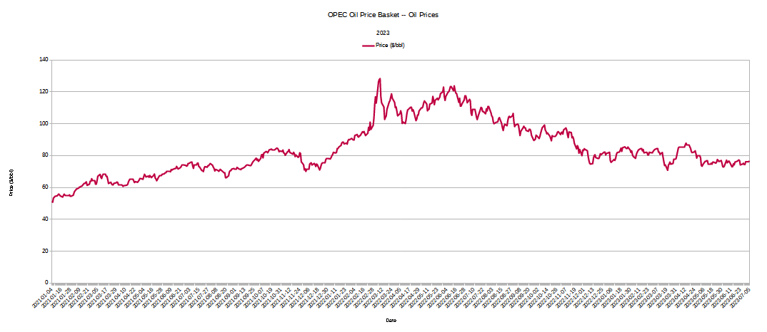 OPEC prices, just like Brent and WTI prices, peaked in June of 2022, and have been on a steady downward trend ever since, achieving a problematic floor only within the past two months, after multiple production cuts.