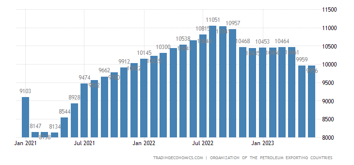 Russia, for example, has been seeing its oil production trend down for several months, and has not reached even close to the peak levels of production it enjoyed before its war with Ukraine.