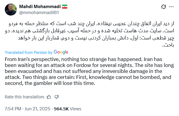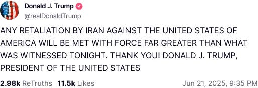 None of this can be taken as assurance that Operation Midnight Hammer will not become yet another “forever war” in the Middle East, but it can be taken as President’s Trump sincere desire that such a war not emerge from this.