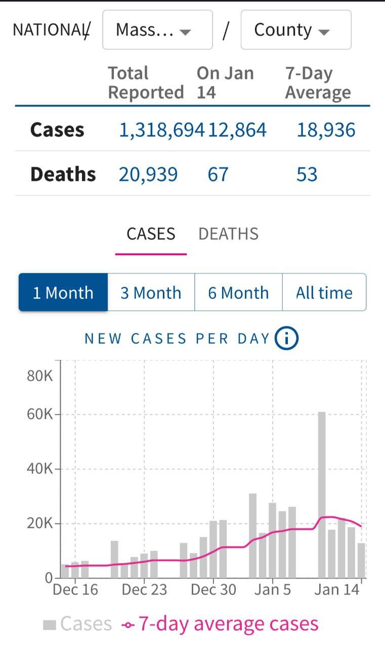 In Massachusetts, COVID-19 cases have been declining for roughly four days.