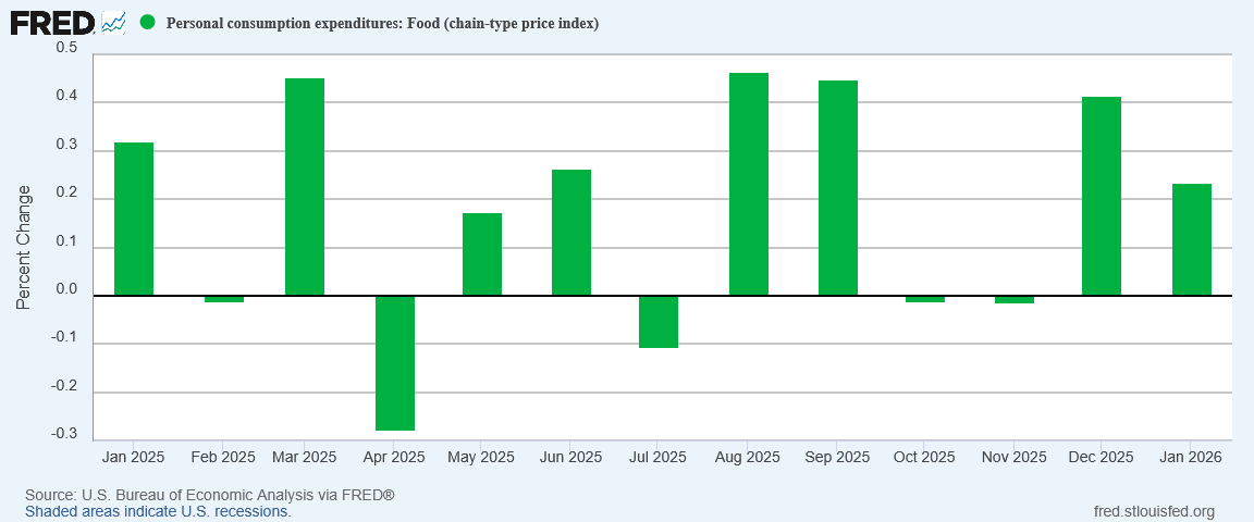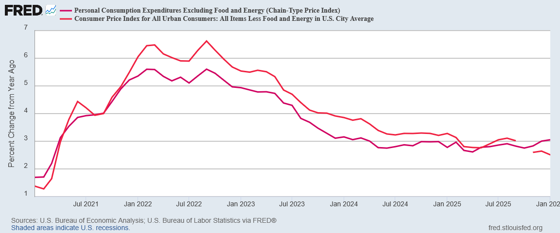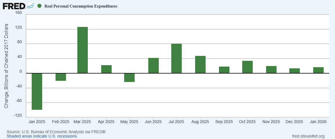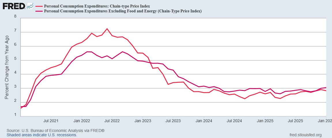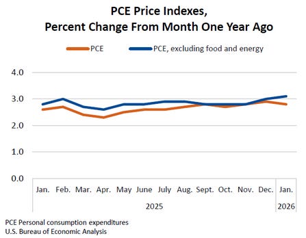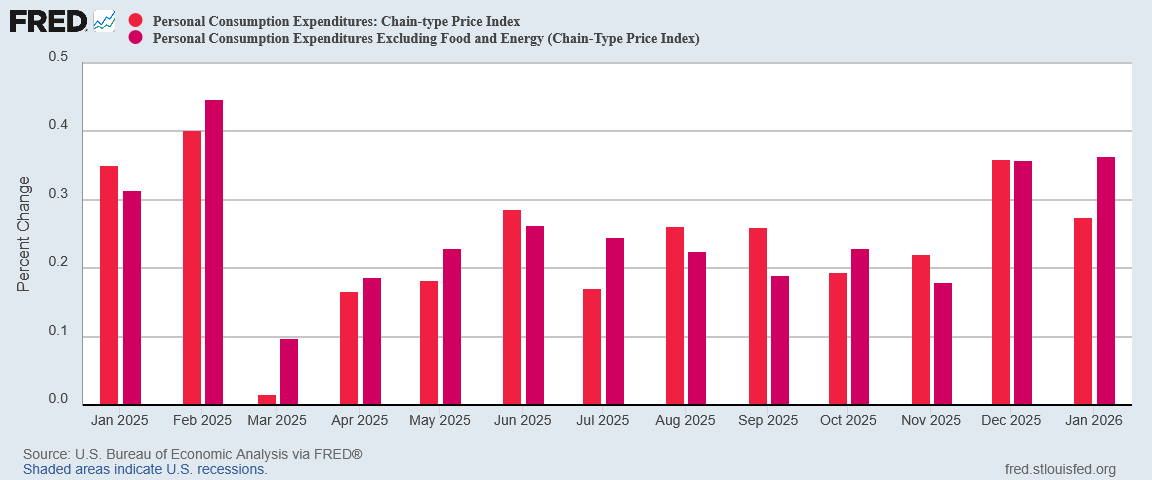 The January Personal Income and Outlays report from the Bureau of Economic Analysis showed inflation not shifting much from December. Everything was more or less the same as it had been, only more so.