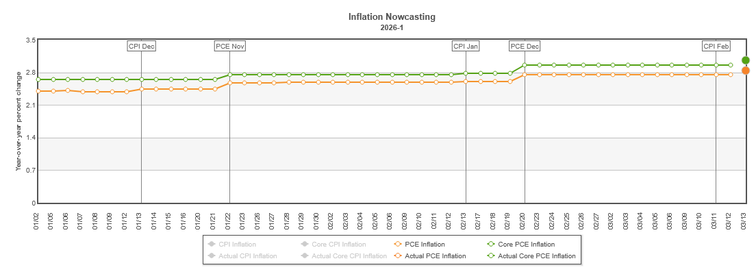 The PCE Price Index (PCEPI) came in slightly higher than had been projected by the Cleveland Federal Reserve inflation nowcast.