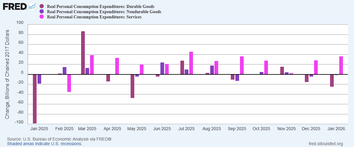 The rise in expenditures for services meant that overall real personal consumption expenditures rose for January.