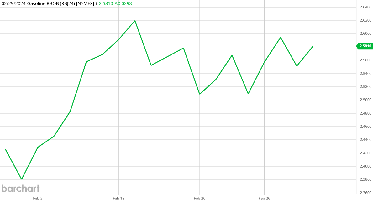 The spot prices for gasoline also moved higher throughout February.