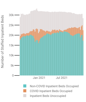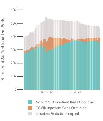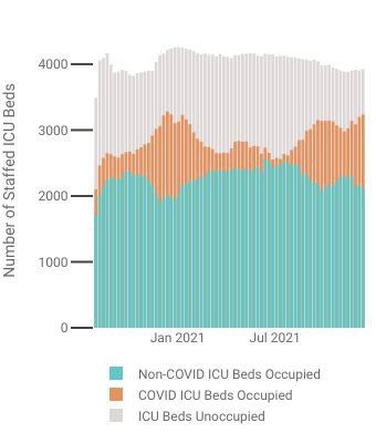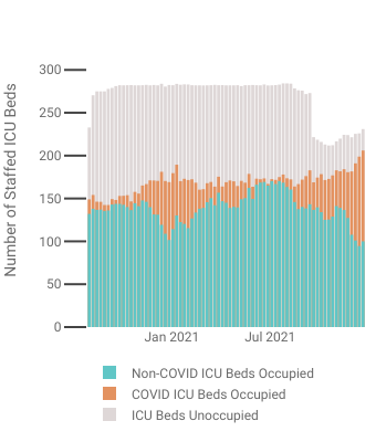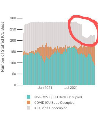 Left unmentioned, however, was a 51-bed drop in total staffed ICU beds in September—23% of total capacity.