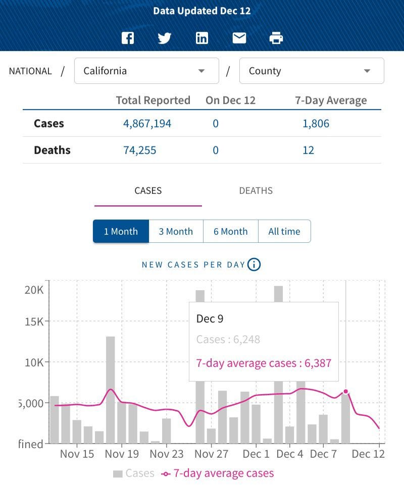 However, cases in California began trending sharply down after December 9 and had been trending down generally for about a week prior.