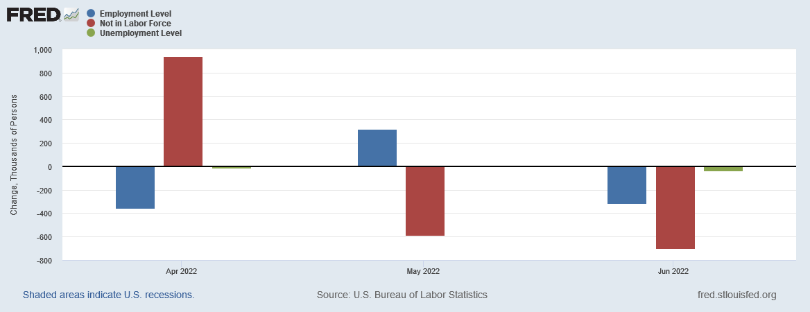 During the second quarter of the year, according to the Household Survey the number of employed persons dropped by 353,000 in April, rose by 321,000 in May, and dropped by 315,000 in June.