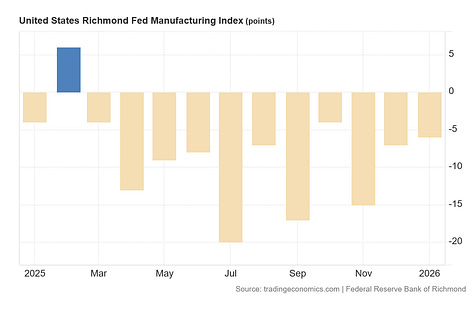 Any time the Federal Reserve district manufacturing indices are negative, that’s not expanding economic activity.