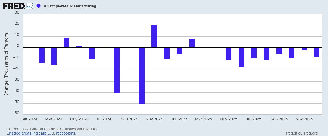 As for jobs markets stabilizing, does it sound as if manufacturing employment is stabilizing when the sector continues to hemorrhage jobs?