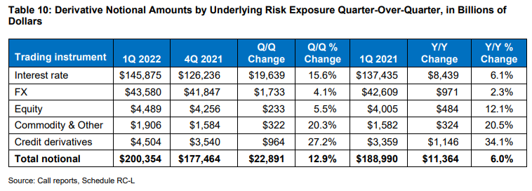 How big are these categories of derivative contracts? According to the Office Of the Comptroller of the Currency, as of the first quarter of 2022, the notional value of all credit derivative contracts within its purview was 200 Trillion dollars.