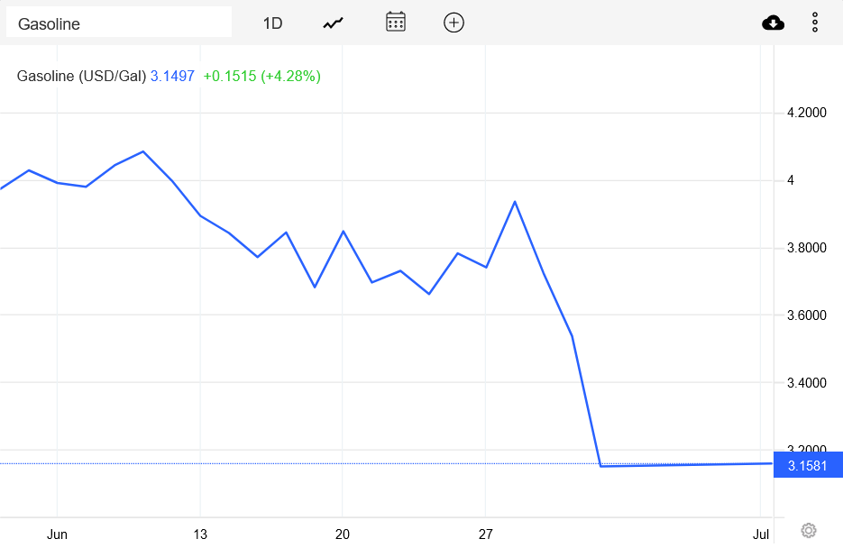 The commodities futures data for gasoline and crude oil do not reflect such increases during the month of June.