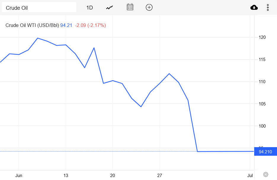 Futures on West Texas Intermediate crude oil declined dramatically during June. They did not rise.