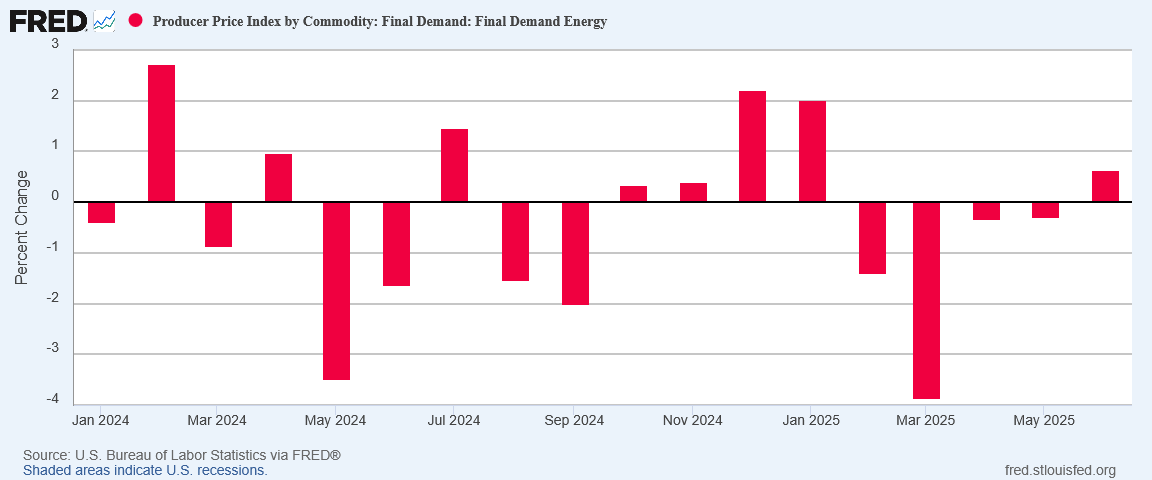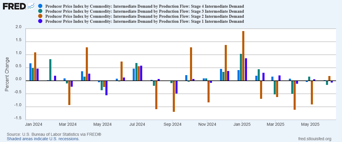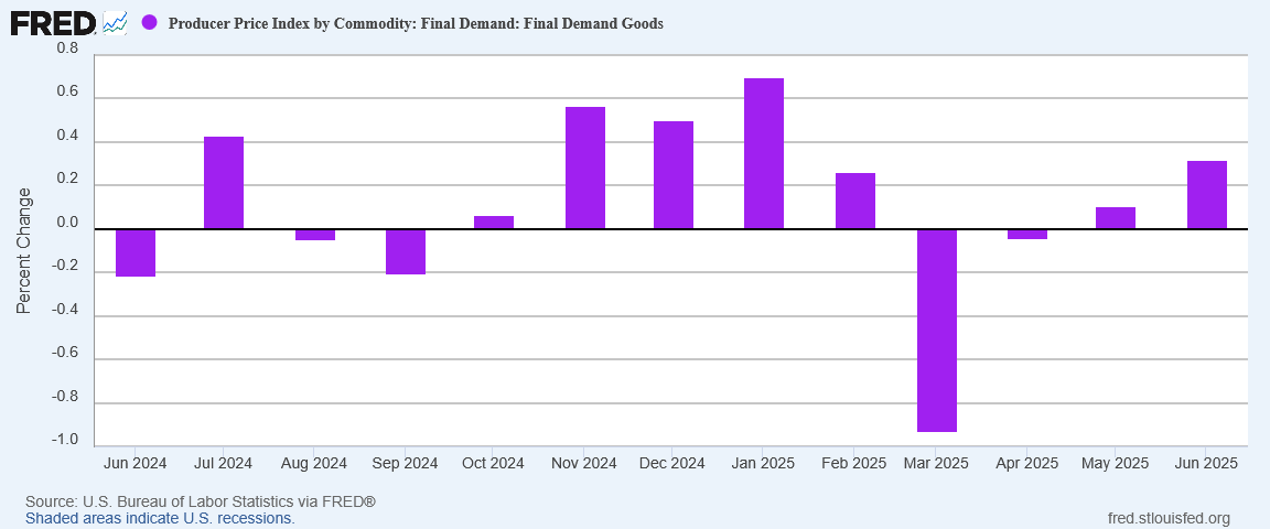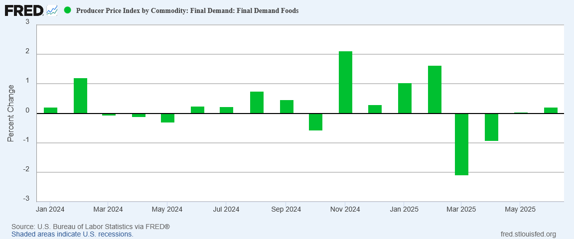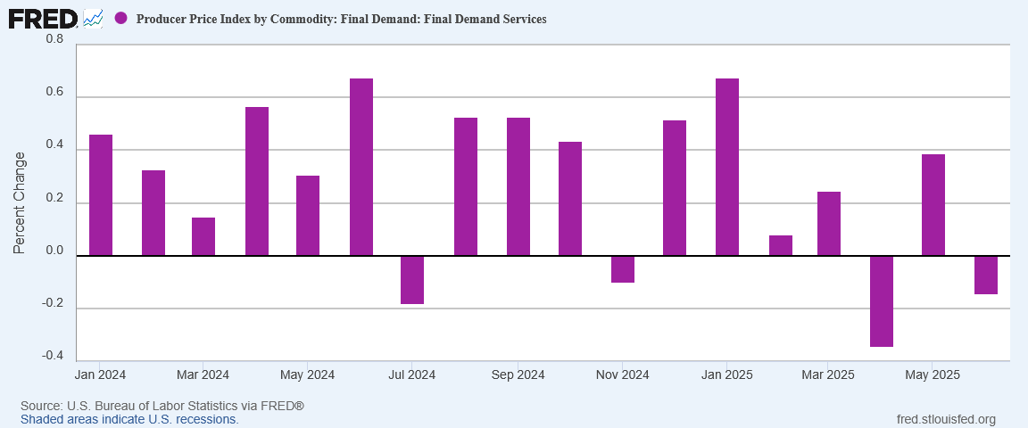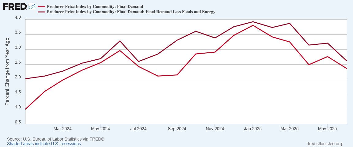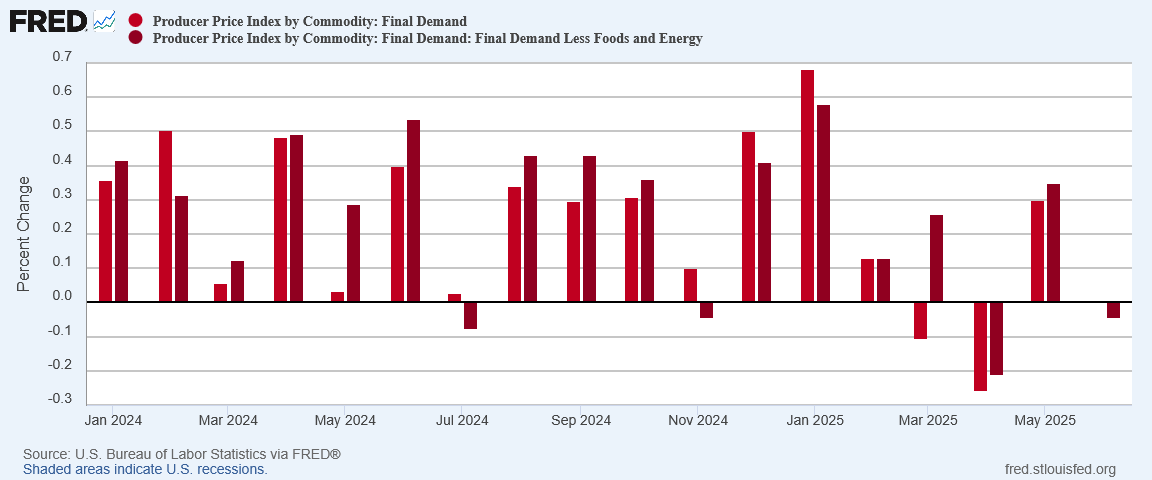 On a seasonally adjusted basis, there was no producer price inflation, broadly speaking, for the month of June. Core producer prices actually fell on a seasonally adjusted basis.
