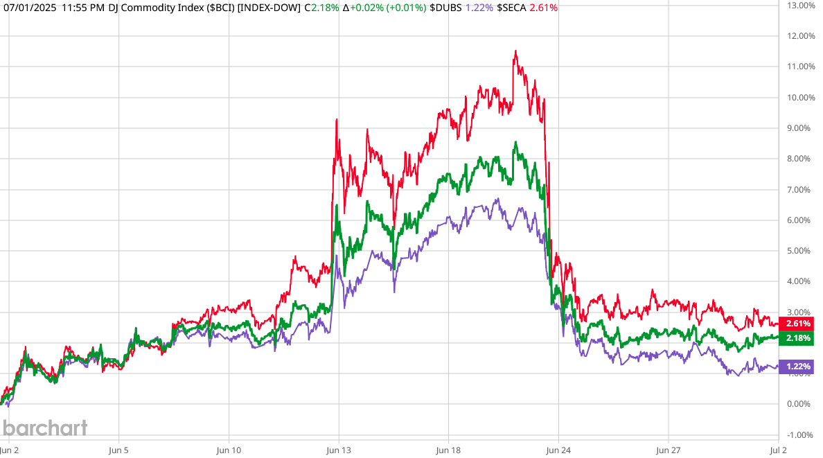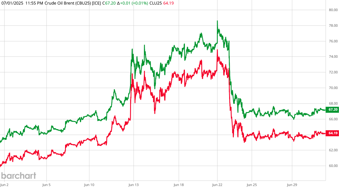 Oil prices, while up for the month, have been largely stable following the Twelve Day War.