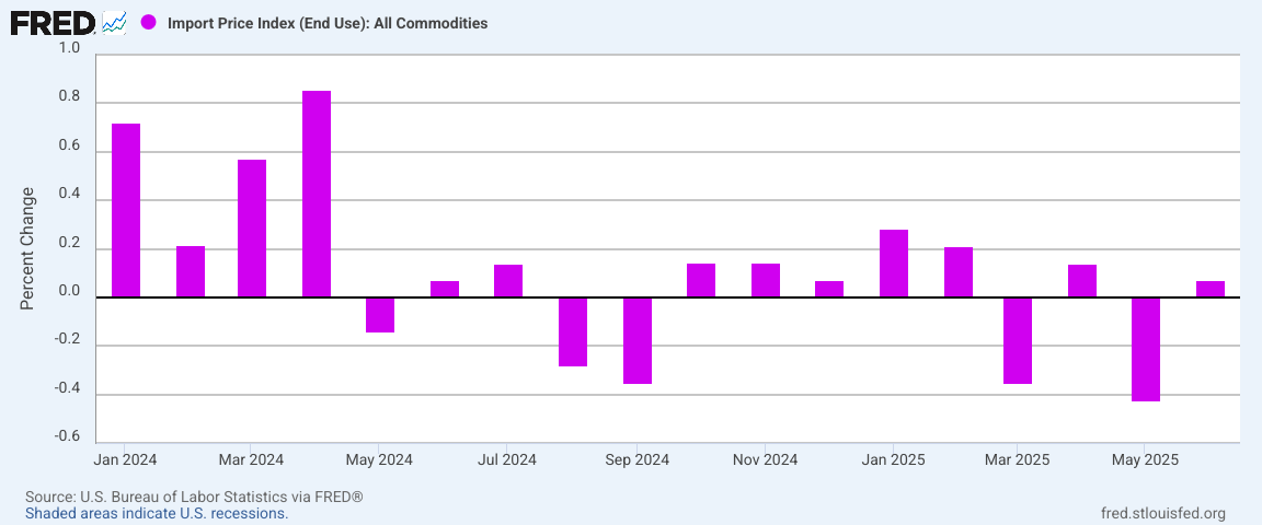 The import price index is out. Import prices barely rose in June--0.07% month on month.