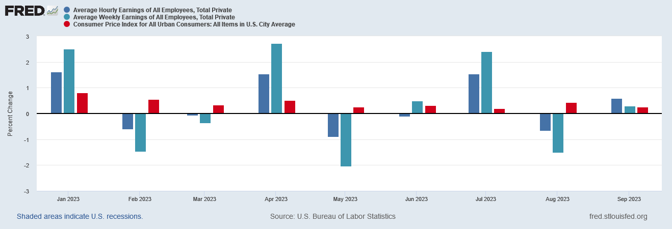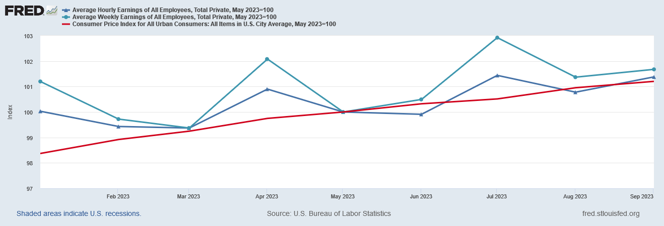 In other words, during 2023 to date, workers’ wages have lost a full percentage point of growth to inflation this year so far.