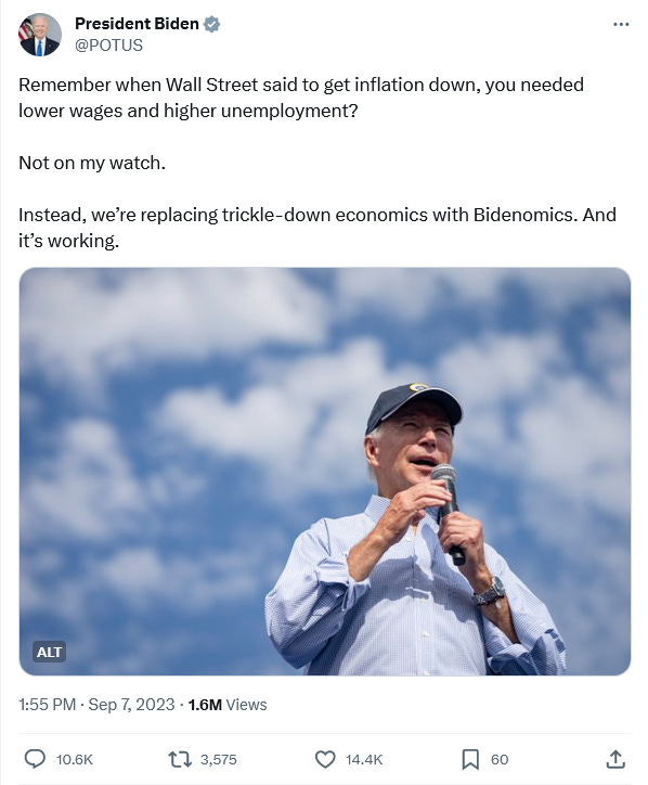 We need to keep current on what the data says about real wages, because what the politicians say about real wages is equal parts hogwash and horse hockey—such as Dementia Joe’s typically lunatic tweet last month.