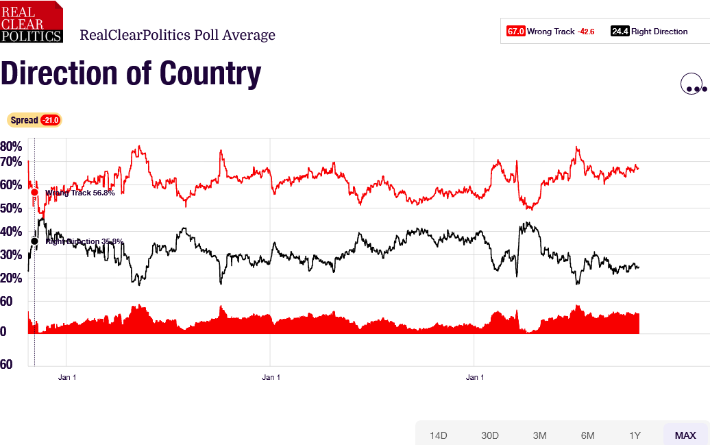 That is not to say that voters are not deeply troubled by the state of affairs within this country. For over 10 years more Americans than not believe this country is headed in a wrong direction.