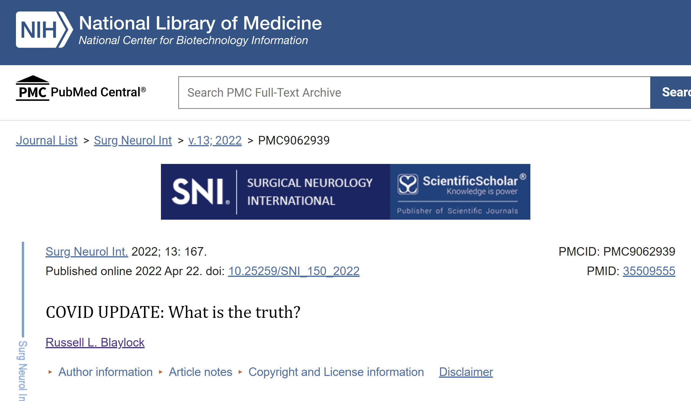 Yet it is significant that Dr Blaylock has had both his original article and this lengthy updated piece published in a peer reviewed journal, providing a nice bit of credentialed confirmation for the things that I myself, Steve Kirsch, Igor Chudov, Brian Mowrey, and so many more have been saying all along. Every such affirmation, large or small, makes us that much harder to dismiss as “misinformation spreaders.”