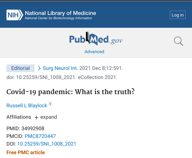 Even in the most severe censorship regimes, the truth has a way of getting out. The truth of COVID-19, of the Pandemic Panic Narrative, of the scientific bastardy of Faucism, of the criminal corruption of Big Pharma, and the malfeasance (and malevolence) of Big Government will be told. Dr Russell Blaylock's peer-reviewed truth bombs are proof.