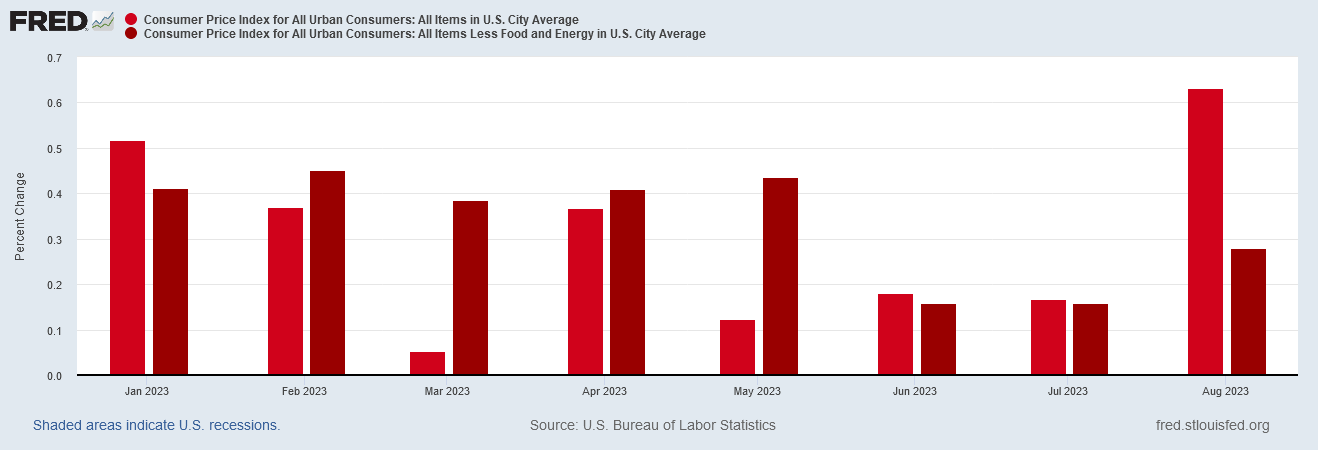 Not only is inflation up year on year, but the August month on month increase in consumer prices was the worst all year, with the increase in core prices being the most in the past four months.
