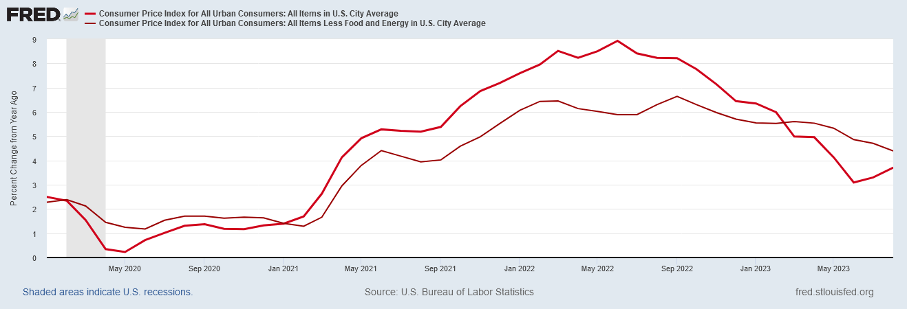 Fact Check: Inflation printed at 3.7% Year on Year in August, and core inlation printed at 4.3% Month on Month. Core inflation did decline from July, but that is the extent of the good news.