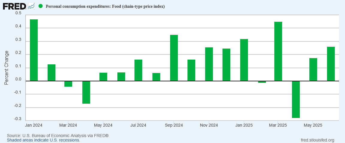 While a number of economists and economic think tanks argue that Trump’s tariffs will ultimately lead to food price inflation, even those arguments concede the tariffs have yet to take effect, which means the driving forces behind food price inflation over the past few months is something over than tariffs.