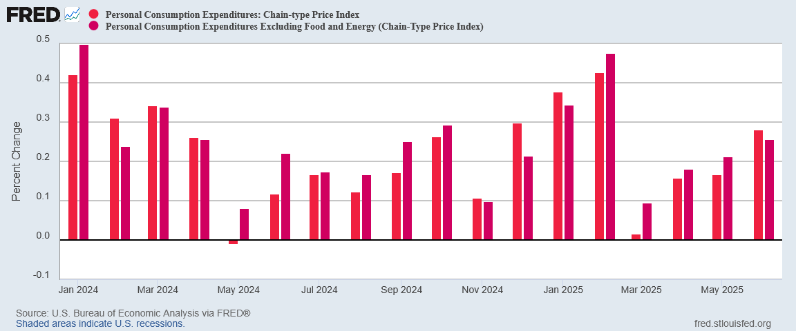 We are not seeing a return to inflation such as we saw during the 2022 hyperinflation cycle, but consumer price inflation printed hotter in June than in May. The PCE Price Index data confirms what the Consumer Price Index data reported earlier.