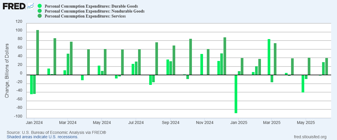 Tariffs probably should not get a complete pass, as durable goods did not see an expenditures rise in June.
