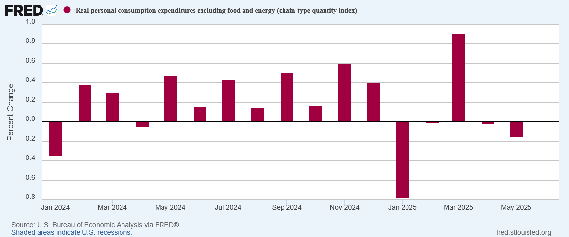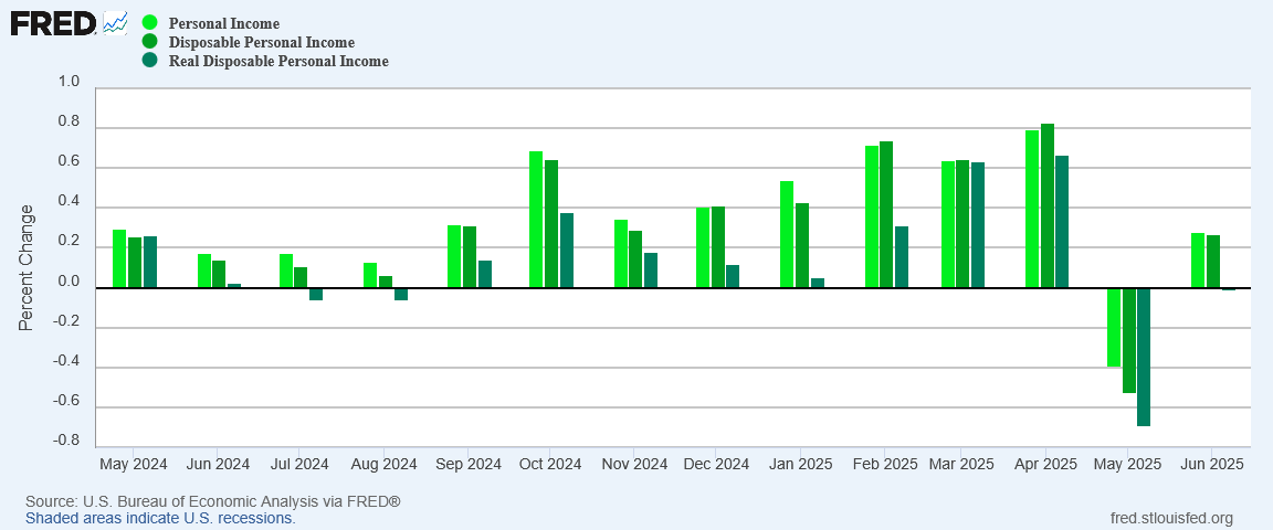 Economic contraction is especially troublesome when we realize that, while nominal income and disposable income rose in June, real disposable income fell.