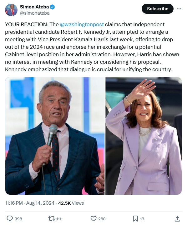 However, the Washington Post also reported RFK, Jr., making substantially the same offer to the Trump team.