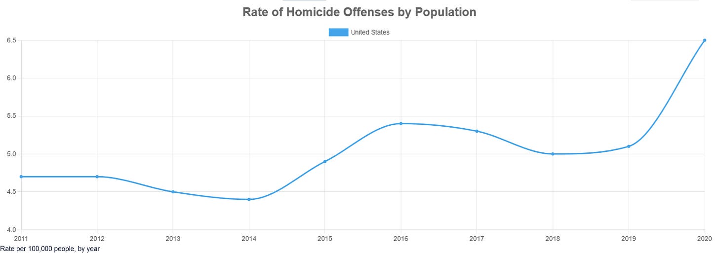 Certainly there has been a significant rise in violent crime in the United States, according to the FBI’s statistics.