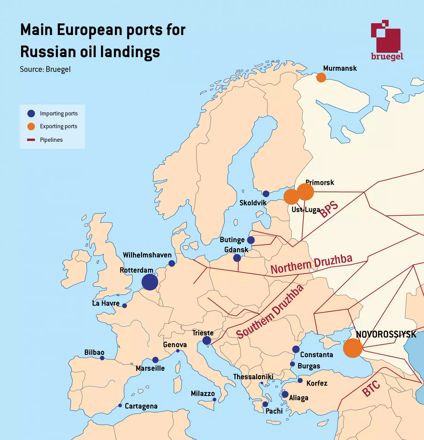 As the map above shows, the three main European ports from which Russia exports crude oil are Novorossiysk on the Black Sea, and Ust-Luga and Primorsk on the Baltic Sea.