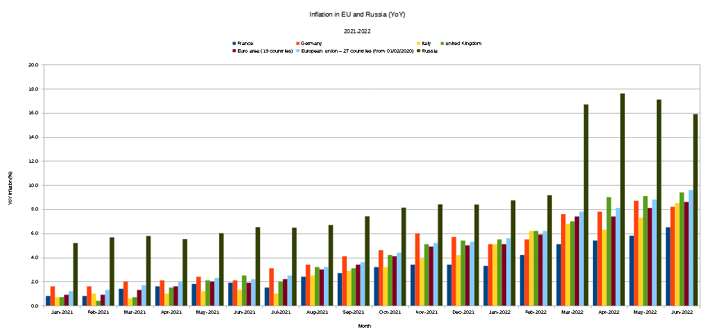 Russia has been grappling with the same rising inflation woes in the aftermath of the 2020 COVID lockdowns—but at twice the levels broadly since across Europe2. The Russo-Ukrainian War has merely exacerbated what was already a worrisome economic trend.