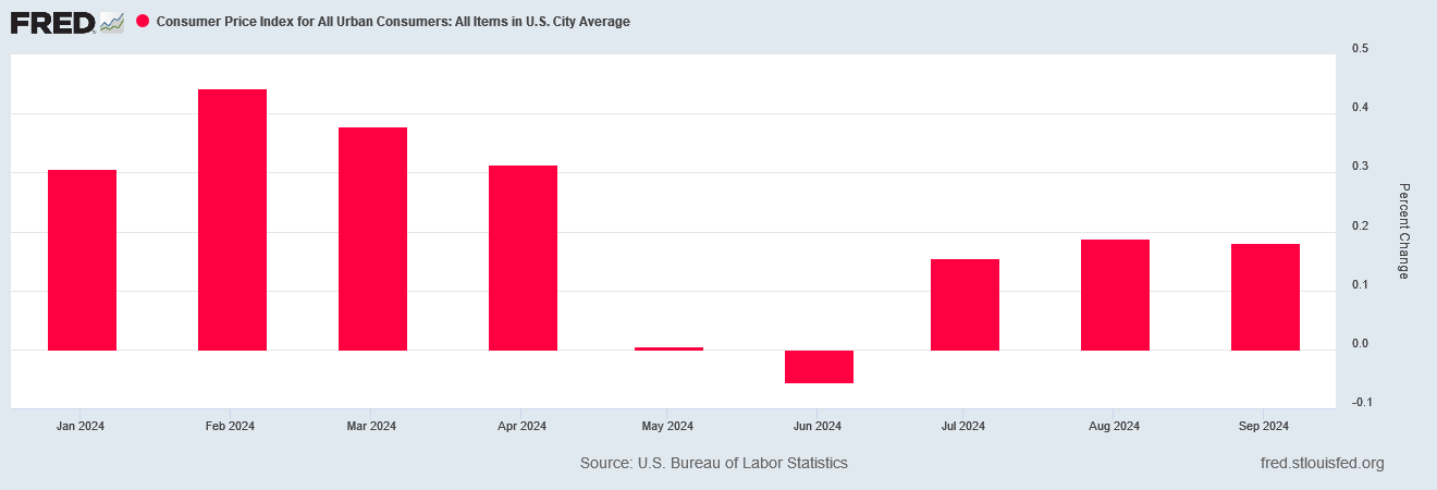 It is a testament to the dogged insistence of corporate media about sticking to their preferred narratives that the “consensus” forecasts of what the inflation metrics would be for September were overly optimistic across the board. Seemingly every economist polled by corporate media expected the inflation metrics to be a good 0.1% lower than they were.