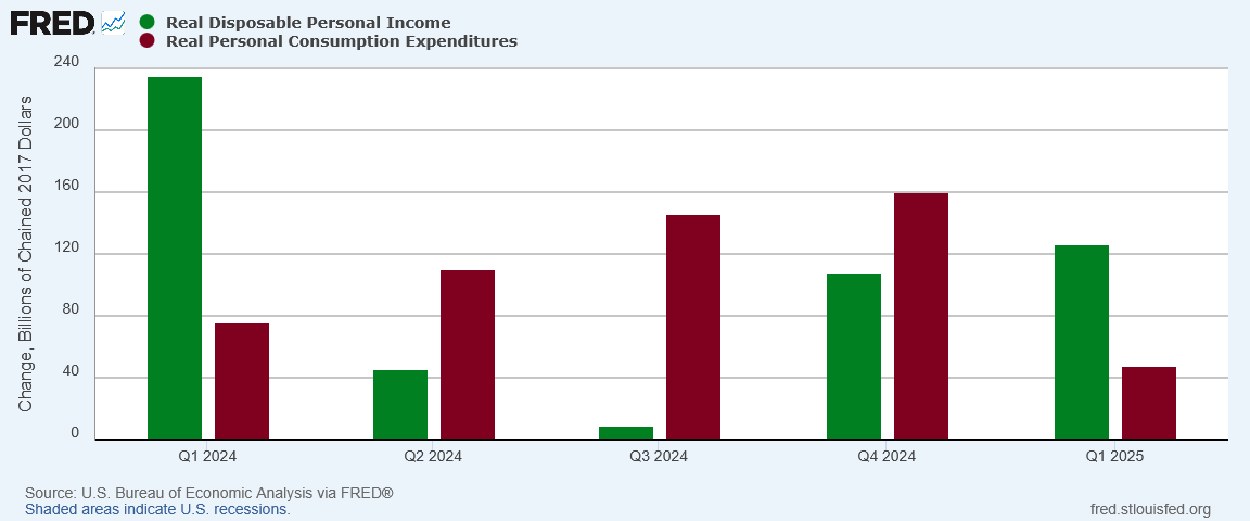 For the first time in a year, real disposable personal income rose while real consumption expenditures fell.