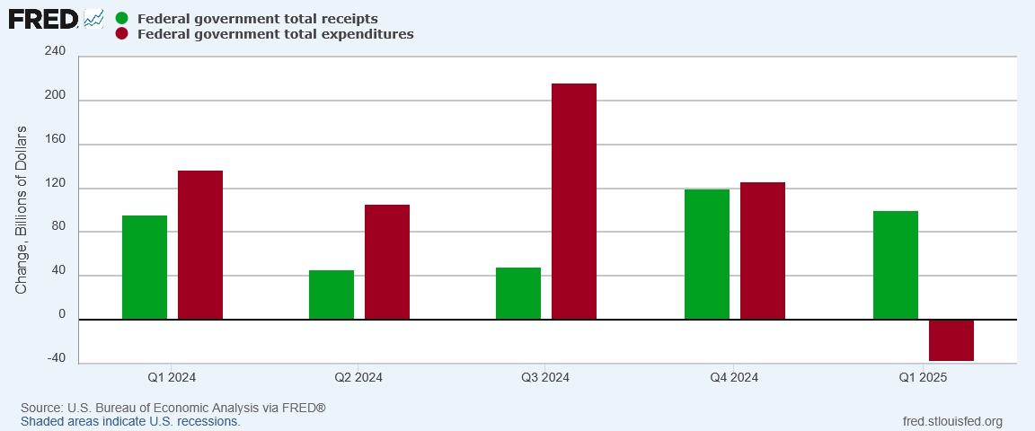 Another small encouragement: Federal expenditures declined quarter on quarter, while federal receipts rose.