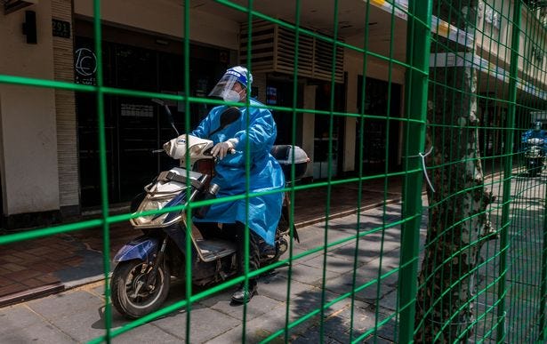 The dystopian horror of Shanghai gets ever more surreal. In recent days, residents are literally being caged as green fencing has begun appearing around various homes. Those inside are trapped inside.
