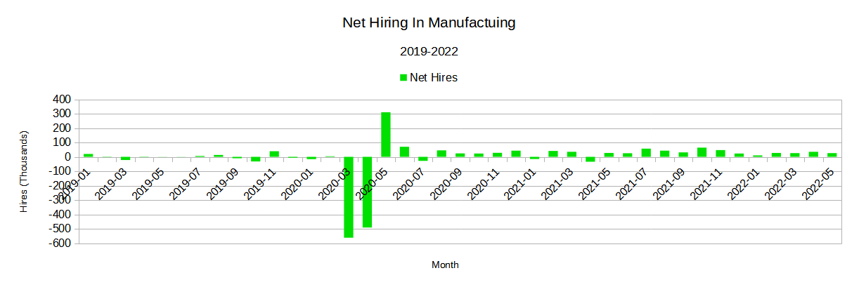 That is not contraction, but expansion. Moreover, while muted relative to the magnitude of 2020 separations during the recession and the recovery of employment in the immediate aftermath, net hiring in manufacturing has exceeded 2019.
